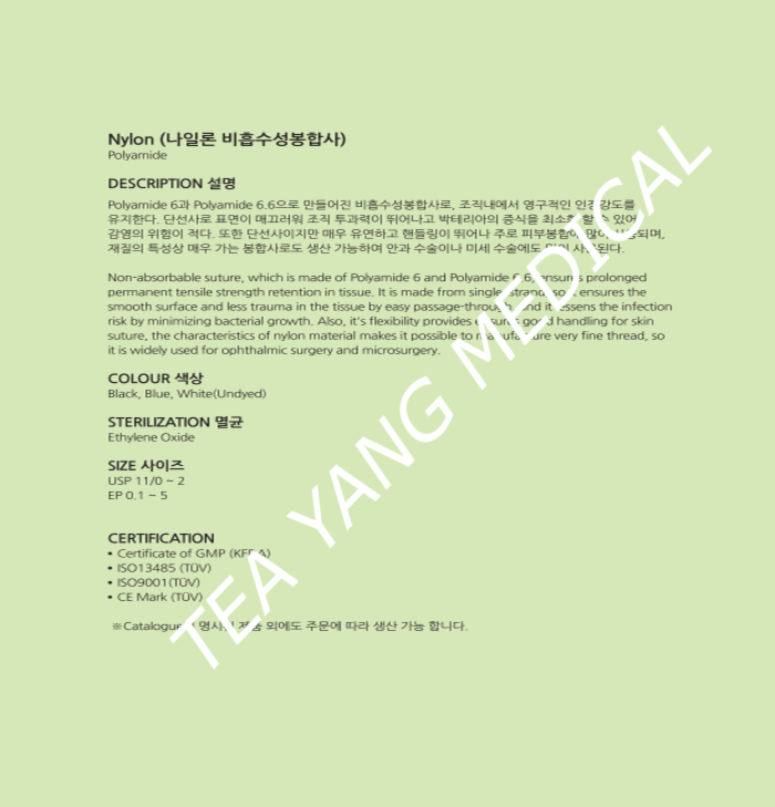 비흡수성 폴리아마이드(나일론) 모노필라멘트 봉합사로