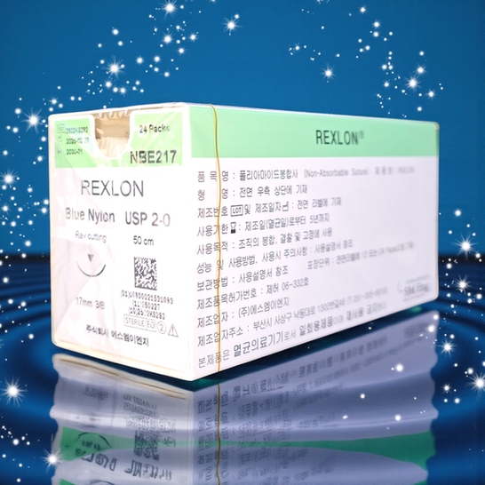 - HOME > 봉합사(침)/수술용실 > 폴리아마이드/비흡수성봉합사 > USP 2-0 > 에스엠이엔지 NBE217 렉슬론 2-0 17mm 3/8 리버스컷팅 50cm 블루나이론
