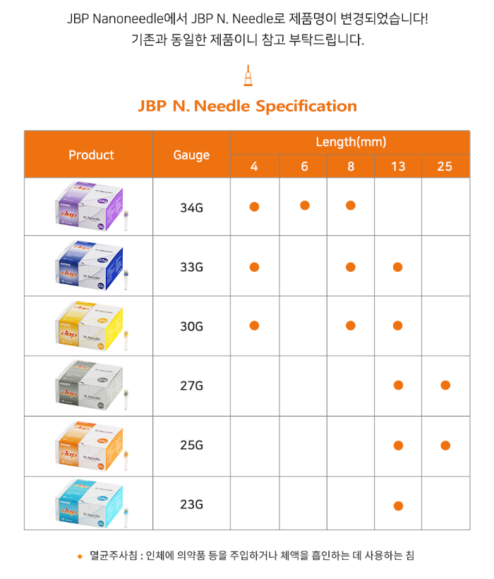 - HOME > 나노캐뉼라/나노니들 > 나노니들 > 25G > JBP 나노니들 25G 13mm UTW 일회용 멸균 주사침 극세침 [물광용]