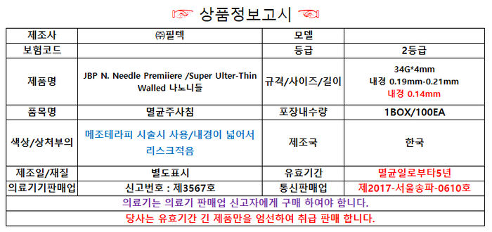 - 피부미용 시술 시 사용할 일회용 주사침을 찾으시는 분
