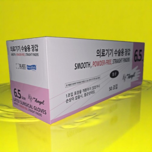 - HOME > 위생용품 > 수술용글러브/멸균PF > 6.5호 > 유니더스 HAG 뉴스킨엔젤 멸균 수술용 글러브 라텍스 장갑 직지형 파우더 프리 6.5호